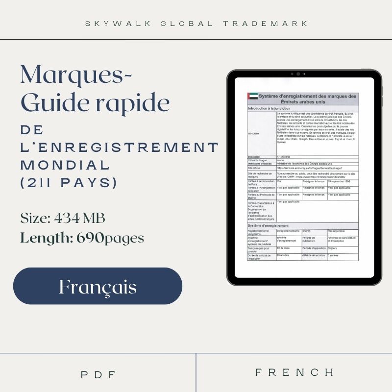 • ✅ Nous sommes des experts mondiaux en marques, spécialisés dans les services d'enregistrement. Cela nous a conduits à créer le "Manuel Rapide d'Enregistrement des Marques Mondiales (211 Pays)"